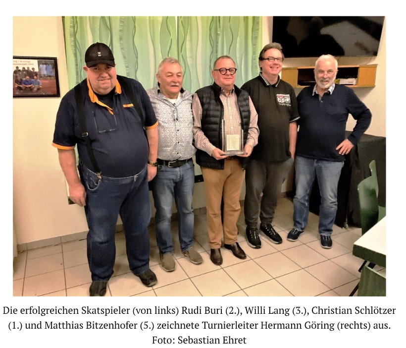 An diesen Stadtmeisterschaften 2026 nahmen auch drei Mitglieder aus unserem Club mit großem Erfolg teil. Gespielt wurden insgesamt 5 Einzelturniere mit 15 Serien und 45 Teilnehmern. Die Teilnehmer aus unserem Club belegten die Plätze 1, 2 und 6 , in der Reihenfolge Christian, Rudi und Jochen.